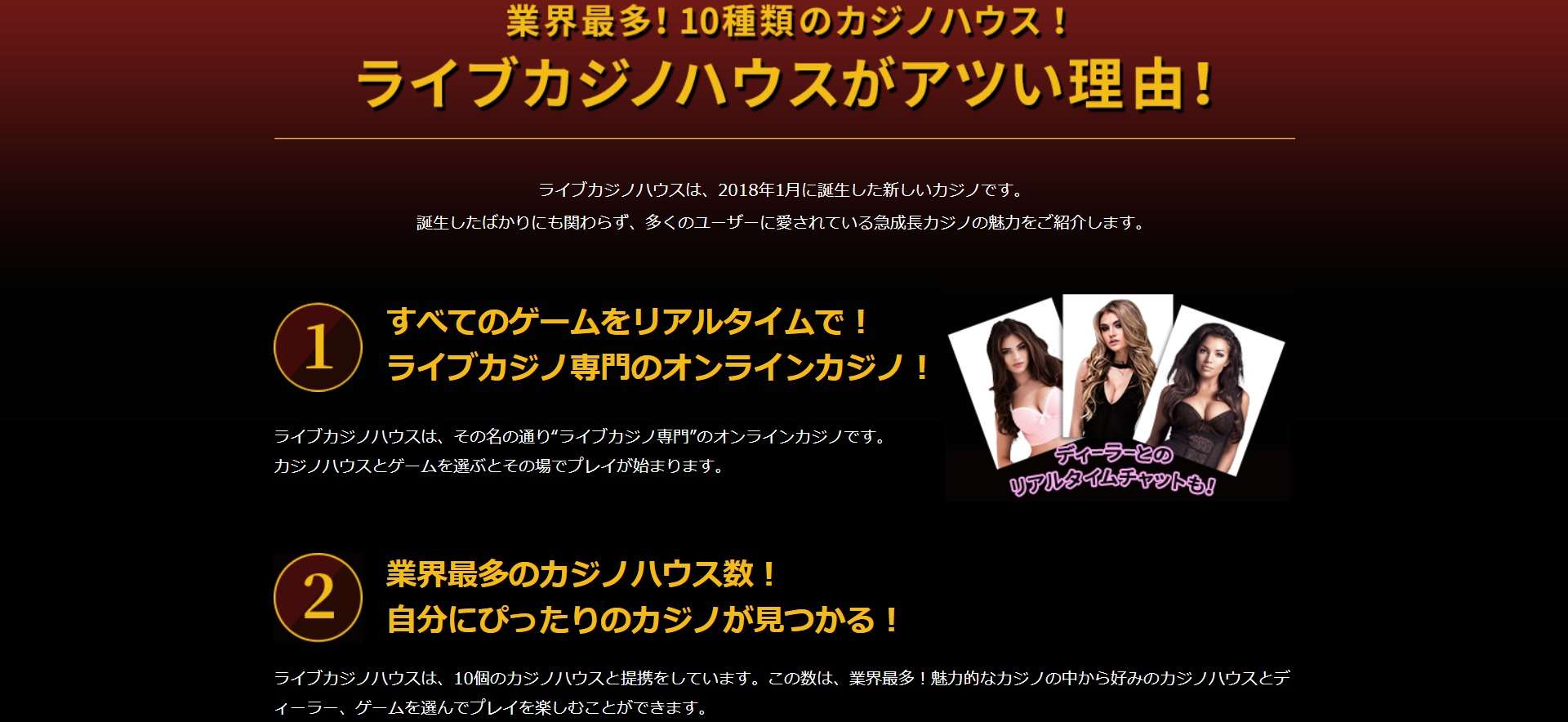 最初にライブカジノハウスのおすすめポイントについて紹介します。