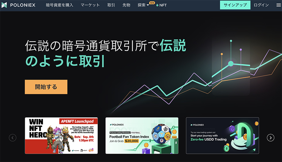 ポロにエックスも世界有数の暗号資産取引所です。393種類ものアルトコイン取扱数は世界トップクラスで、2017年には取引高世界一位なりました。